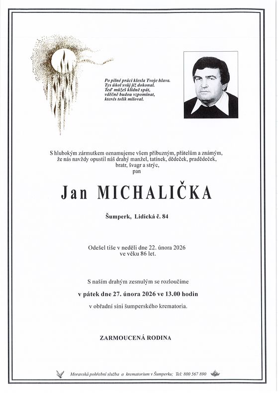| Jan Michalička | 1939 | 22.02.2026 | Šumperk | s obřadem |