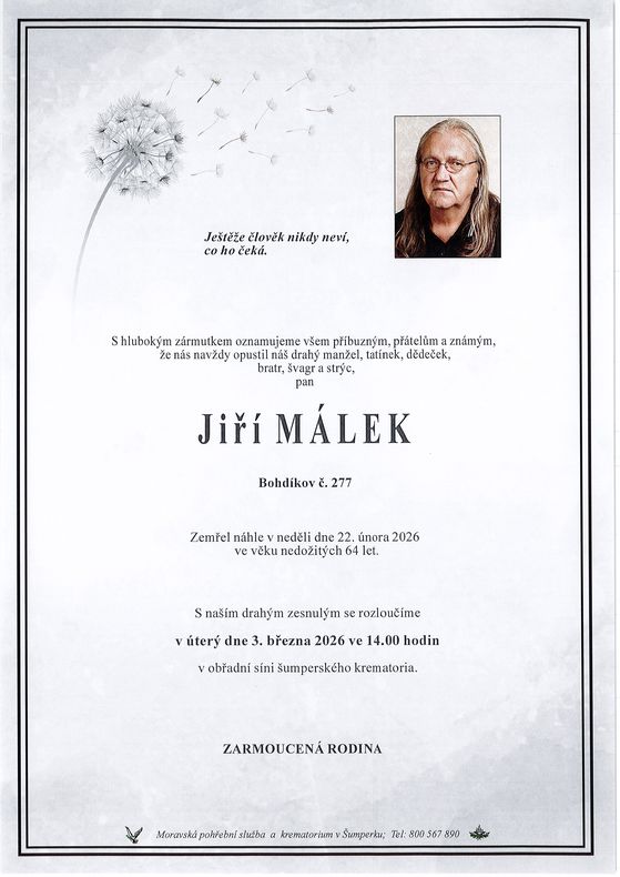 | Jiří Málek | 1962 | 22.02.2026 | Bohdíkov | s obřadem |