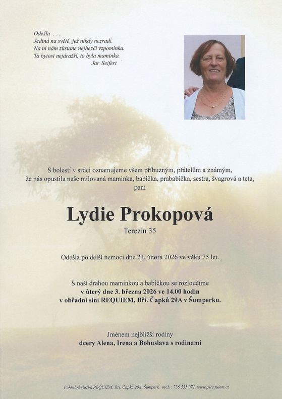 | Lydie Prokopová | 1950 | 23.02.2026 | Terezín | s obřadem |