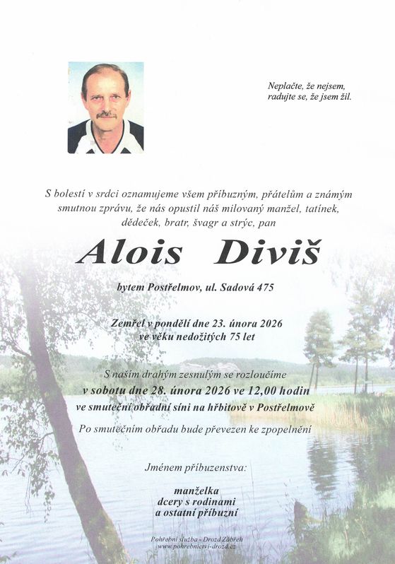 | Alois Diviš | 1951 | 23.02.2026 | Postřelmov | s obřadem |
