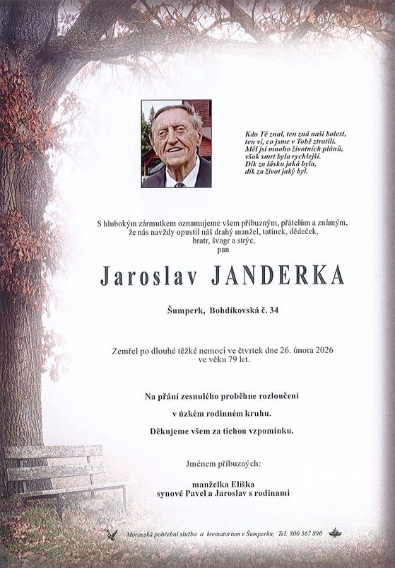 | Jaroslav Janderka | 1946 | 26.02.2026 | Šumperk | s obřadem |