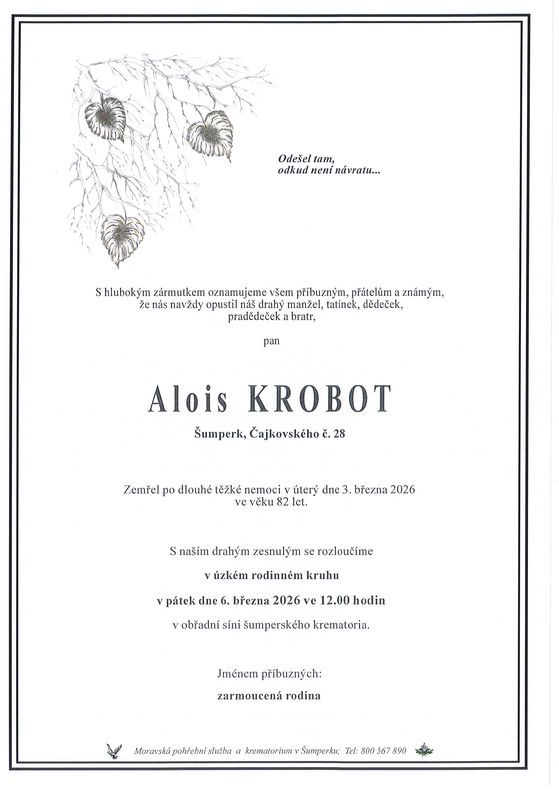 | Alois Krobot | 1944 | 03.03.2026 | Šumperk | s obřadem |