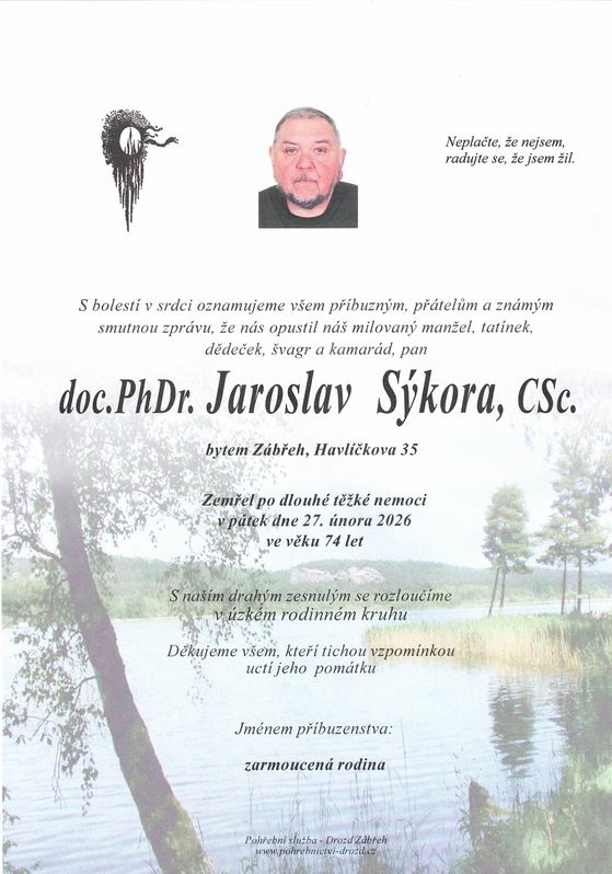 | do. PhDr. Jaroslav Sýkora, CSc. | 1951 | 27.02.2026 | Zábřeh | bez obřadu |