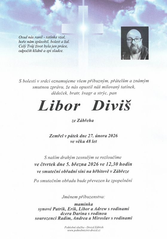 | Libor Diviš | 1977 | 27.02.2026 | Ostrava | bez obřadu |