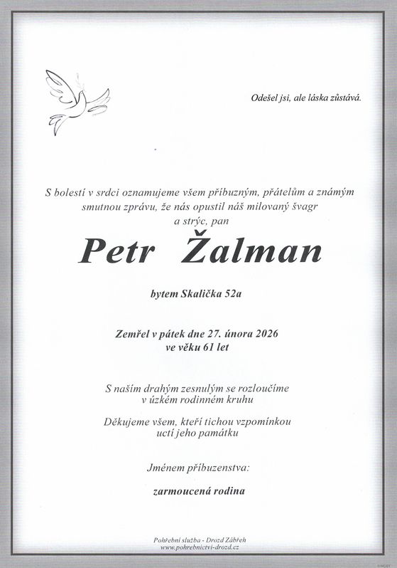 | Petr Žalman | 1964 | 27.02.2026 | Skalička | bez obřadu |