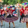 FOTOREPORTÁŽ: Sobotní program folklorního festivalu pokračoval oblíbenou Roztančenou ulicí. Lidé v centru města čekali desítky minut, aby si prohlédli tuzemské i zahraniční soubory.