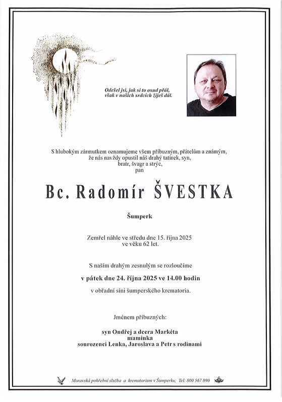 | Bc. Radomír Švestka | 1963 | 15.10.2025 | Šumperk | s obřadem |
