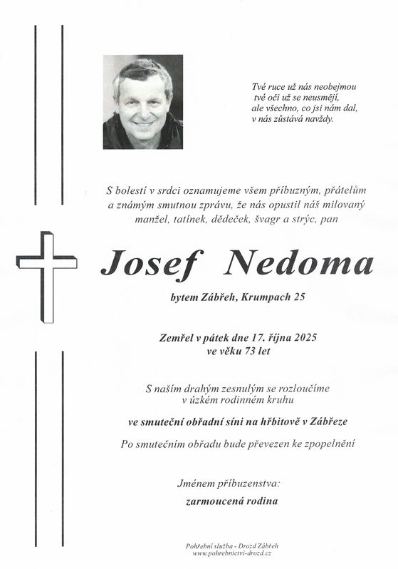 | Josef Nedoma | 1952 | 17.10.2025 | Zábřeh | s obřadem |