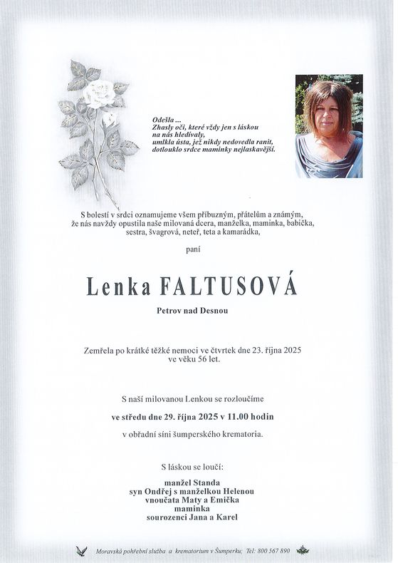 | Lenka Faltusová | 1969 | 23.10.2025 | Petrov nad Desnou | s obřadem |