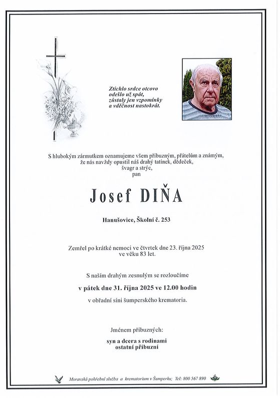 | Josef Diňa | 1942 | 23.10.2025 | Hanušovice | s obřadem |