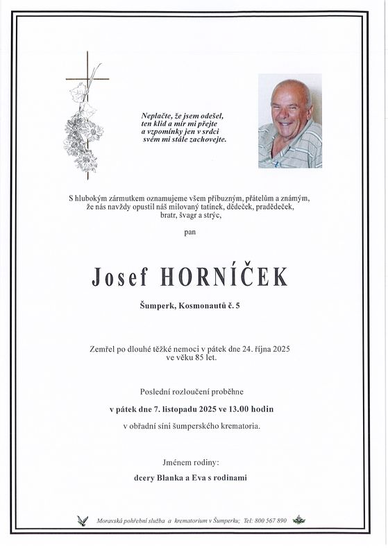 | Josef Horníček | 1940 | 24.10.2025 | Šumperk | s obřadem |