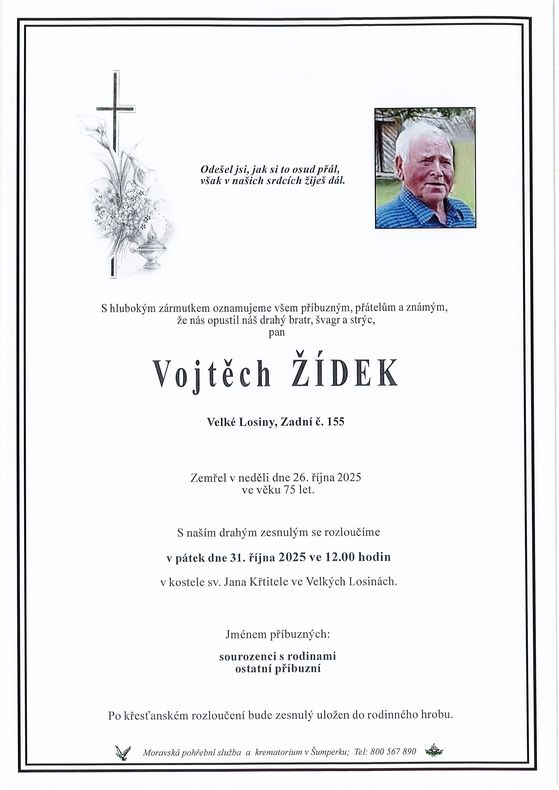 | Vojtěch Žídek | 1950 | 26.10.2025 | Velké Losiny | s obřadem |