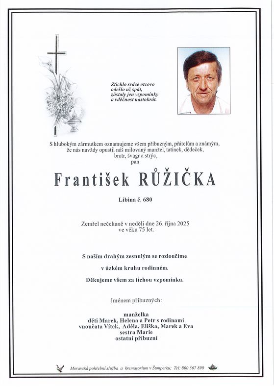 | František Růžička | 1950 | 26.10.2025 | Libina | s obřadem |