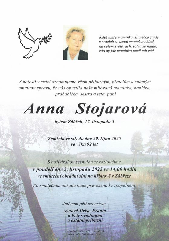 | Anna Stojarová | 1933 | 29.10.2025 | Zábřeh | s obřadem |