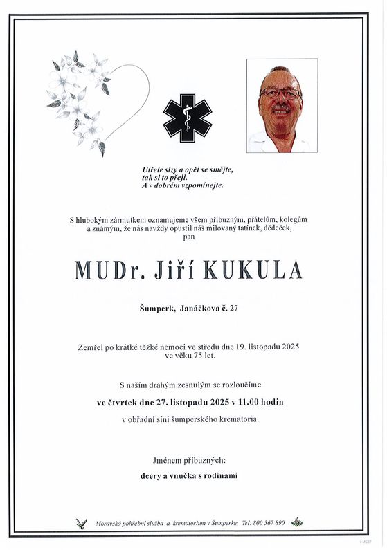 | MUDr. Jiří Kukula | 1950 | 19.11.2025 | Šumperk | s obřadem |