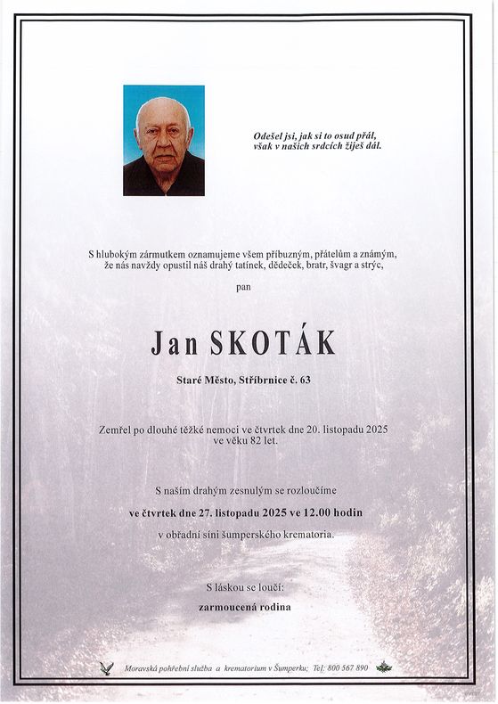 | Jan Skoták | 1943 | 20.11.2025 | Stříbrnice | s obřadem |