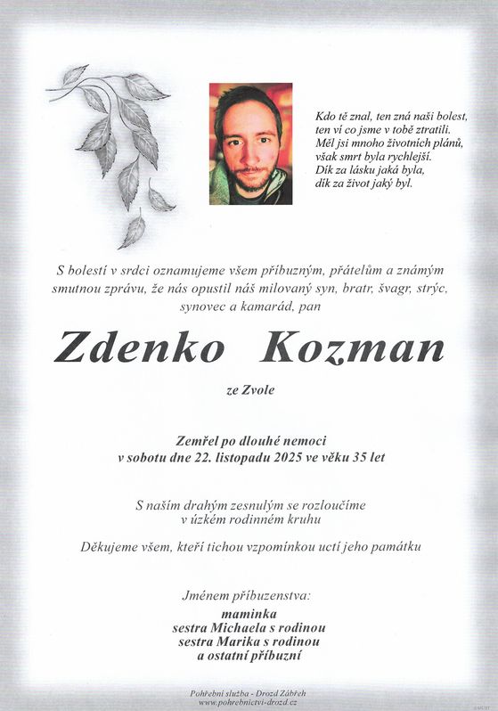 | Zdenko Kozman | 1990 | 22.11.2025 | Olomouc | s obřadem |