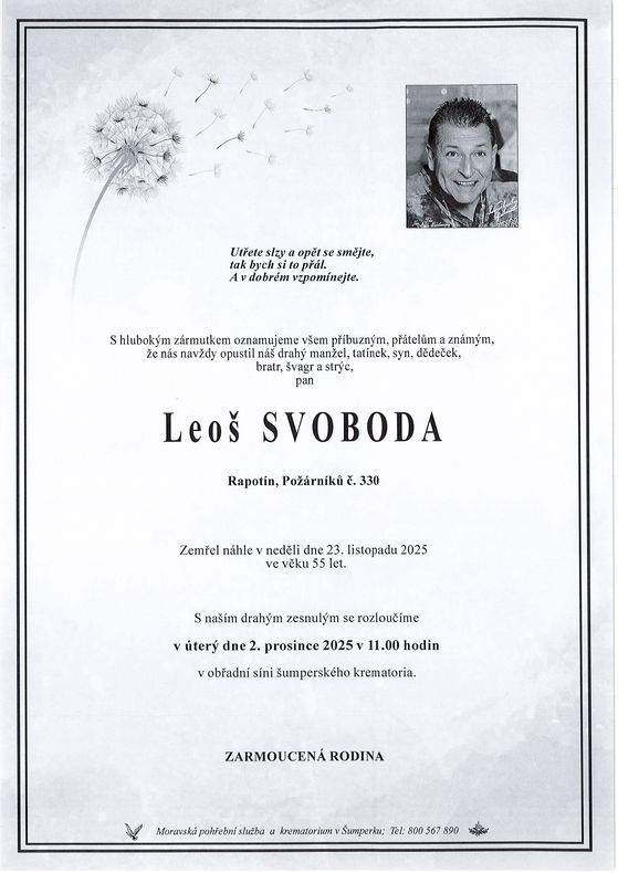 | Leoš Svoboda | 1970 | 23.11.2025 | Rapotín | s obřadem |