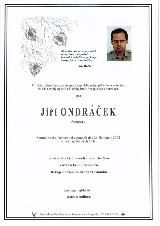 | Jiří Ondráček | 1960 | 24.11.2025 | Šumperk | bez obřadu |