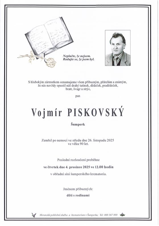 | Vojmír Piskovský | 1935 | 26.11.2025 | Šumperk | s obřadem |