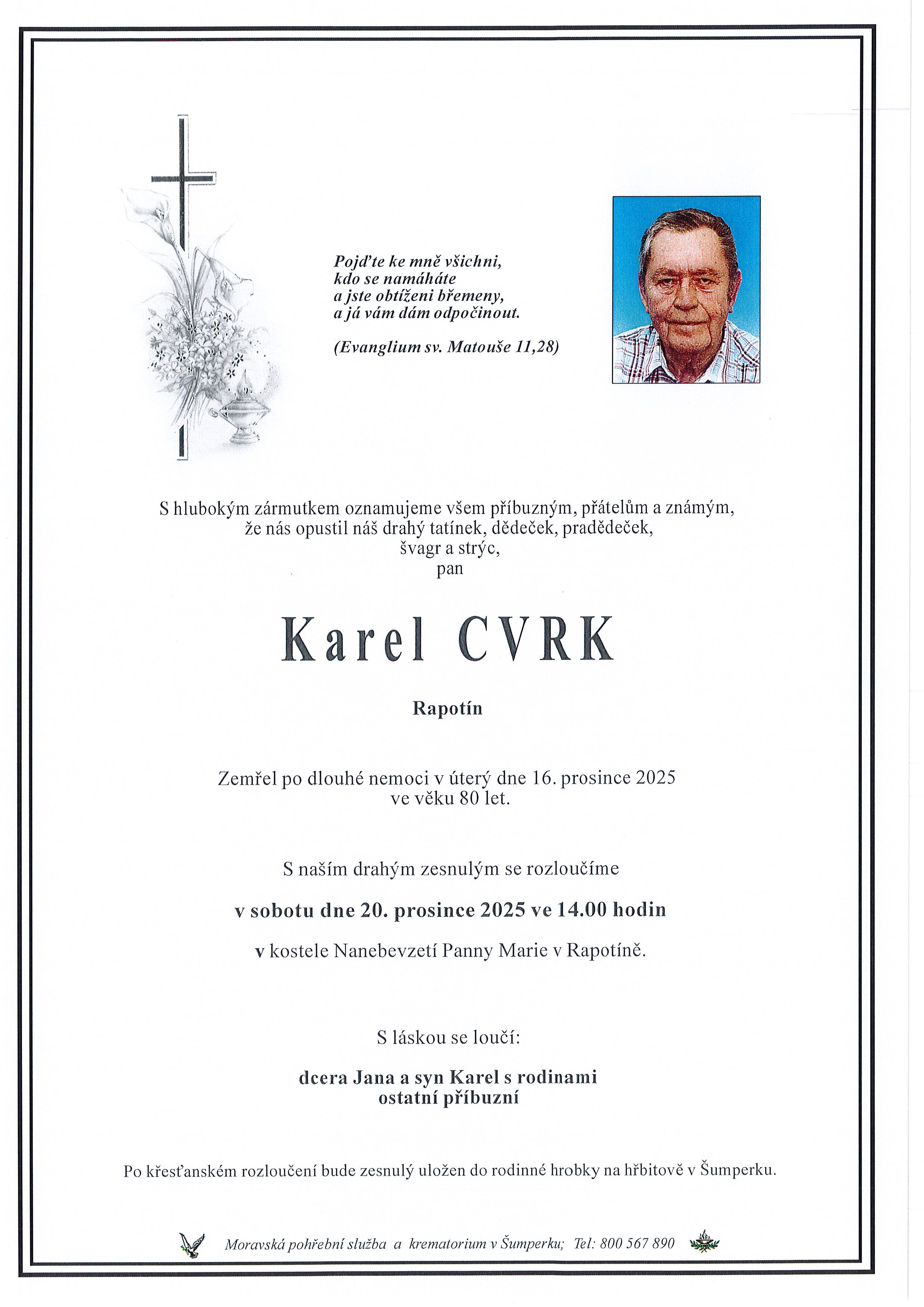 | Karel Cvrk | 1945 | 16.12.2025 | Rapotín | s obřadem |