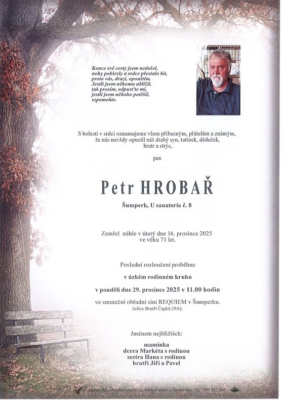 | Petr Hrobař | 1954 | 16.12.2025 | Šumperk | s obřadem |