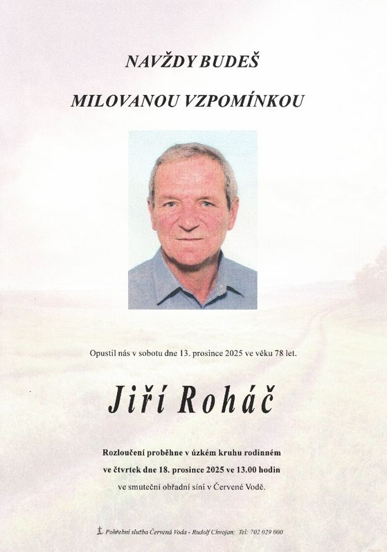 | Jiří Roháč | 1947 | 13.12.2025 | Šumperk | bez obřadu |