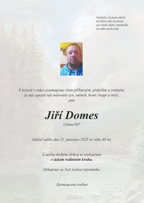 | Jiří Domes | 1977 | 21.12.2025 | Libina | bez obřadu |