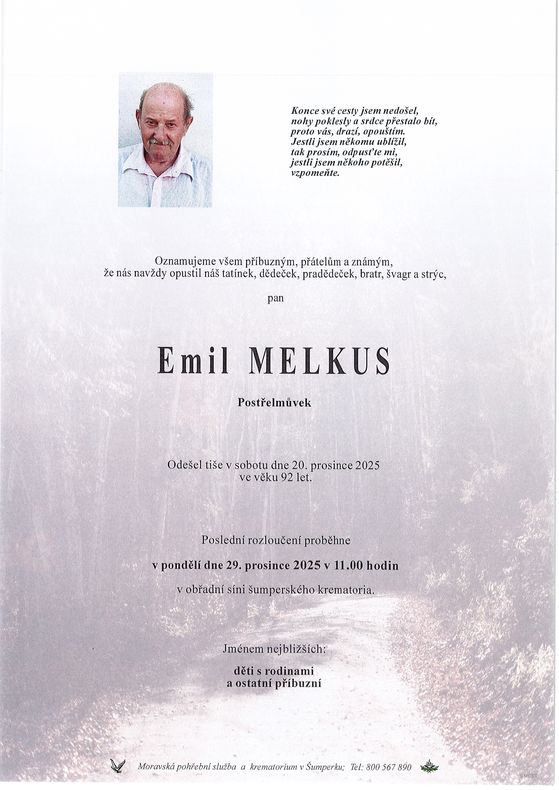 | Emil Melkus | 1933 | 20.12.2025 | Postřelmůvek | s obřadem |