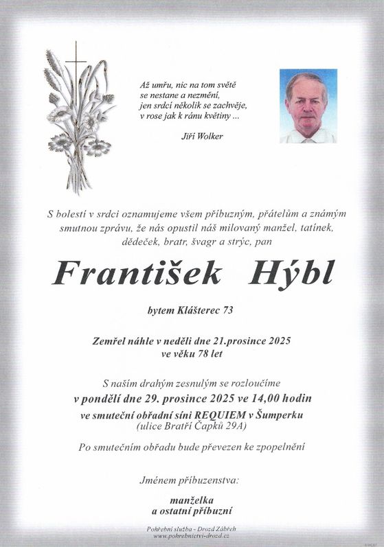 | František Hýbl | 1947 | 21.12.2025 | Klášterec | s obřadem |