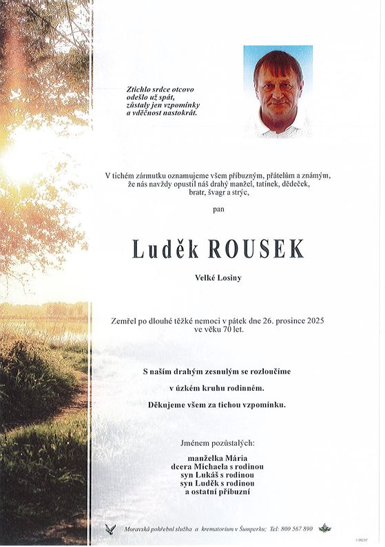 | Luděk Rousek | 1955 | 26.12.2025 | Velké Losiny | bez obřadu |