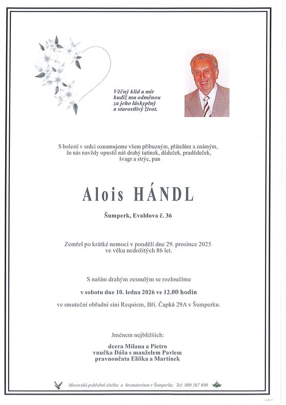 | Alois Hándl | 1940 | 29.12.2025 | Šumperk | s obřadem |